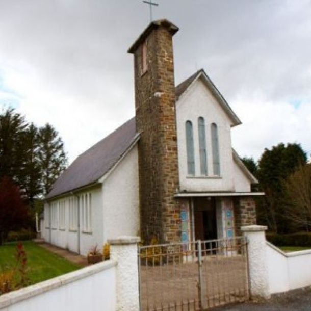 In 1918 the old church fell down. It was damaged in the war and was rebuilt in 1956. Lots of local men were involved in the rebuilding of the church. It is dedicated to the sacred heart. There was and still is a footbridge from near Carrigcannon to the church. In the past, many people used to walk to mass.