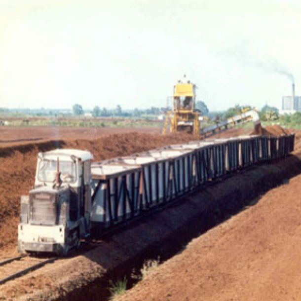 Many people in Lyreacrompane worked with Bord na Móna from 1949 to 1966. They earned their living by working in the bog. It provided food for their families. Lyre Locomotive LM12 was the name of the train that went around the bog. It picked up the turf as it went around. Then it tipped the turf into the trailers. When Bord na Móna closed, the train was transferred to Barna. Sometimes the turf was crushed and sent to hospitals. The Lyre Locomotive LM12 was American built. It started on petrol and ran on diesel and it was switched over to petrol to turn it off. It was the only one of its kind in Ireland. Bord na Móna had its own football team and they won the Healy Cup.